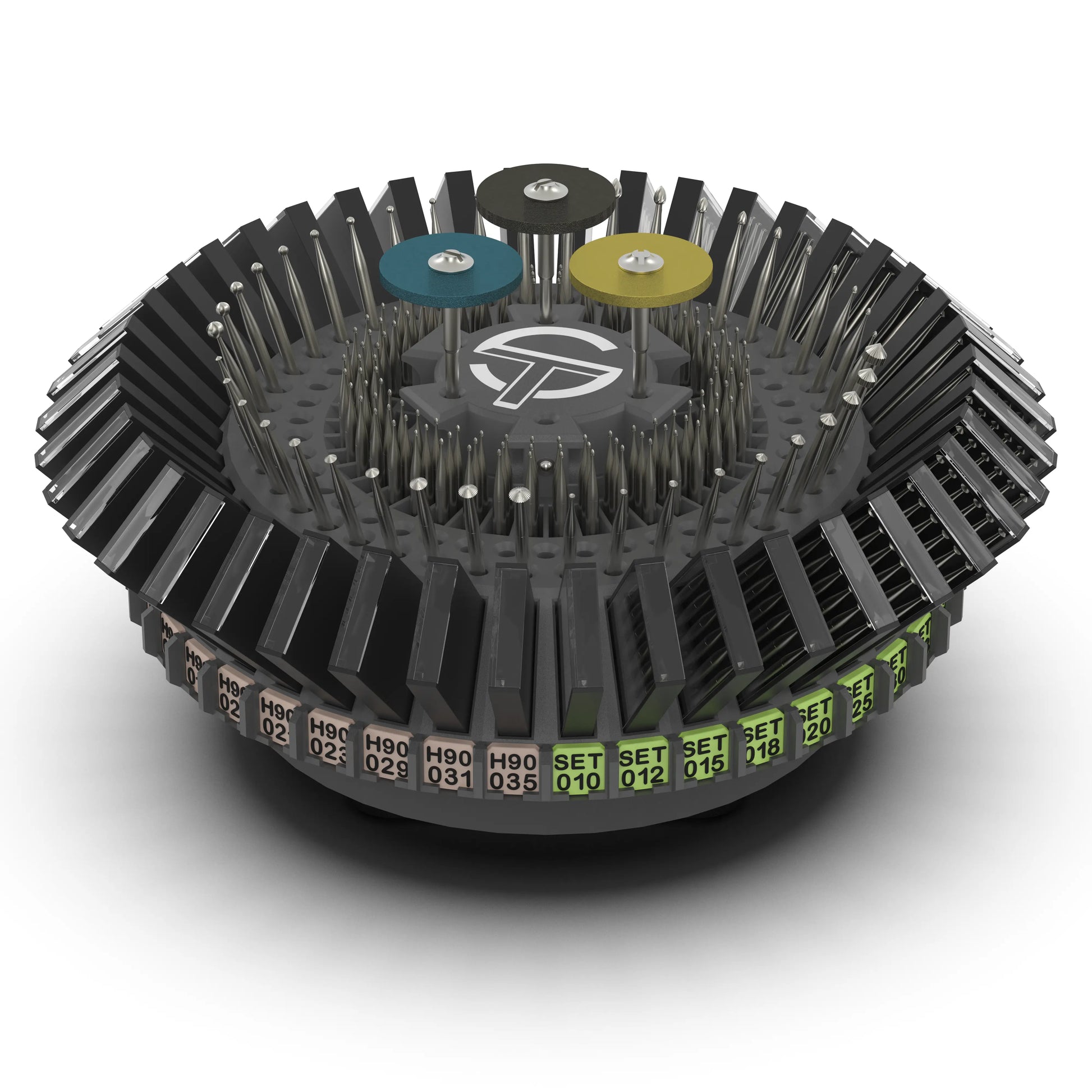 Store and organize up to 42 bur packs with labeled slots tailored to your specific setup.